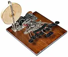 The earliest known chord keyboard was part of the "five-needle" telegraph operator station, designed by Wheatstone and Cooke in 1836, in which any two of the five needles could point left or right to indicate letters on a grid. It was designed to be used by untrained operators (who would determine which keys to press by looking at the grid), and was not used where trained telegraph operators were available.