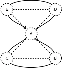 ![]() | Remove repeated vertices, giving the algorithm's output. If the alternate tour would have been used, the shortcut would be going from C to E which results in a shorter route (A->B->C->E->D->A) if this is an euclidean graph as the route A->B->C->D->E->A has intersecting lines which is proven not to be the shortest route. |
