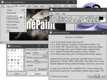 CinePaint is a free and open source computer program for painting and retouching bitmap frames of films. It is a fork of version 1.0.4 of the GNU Image Manipulation Program (GIMP). It enjoyed some success as one of the earliest open source tools developed for feature motion picture visual effects and animation work.[3] The main reason for this adoption over mainline GIMP was its support for high bit depths (greater than 8-bits per channel) which can be required for film work. The mainline GIMP project later added high bit depths in GIMP 2.9.2, released November 2015.[4] It is free software under the GPL-2.0-or-later. In 2018, a post titled "CinePaint 2.0 Making Progress" announced progress,[5] but version 2.0 has not been released as of 2022.