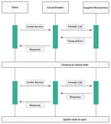 In this state circuit breaker returns an error immediately without even invoking the services. The Circuit breakers move into the half-open state after a timeout period elapses. Usually, it will have a monitoring system where the timeout will be specified.