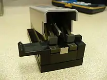 A cleave in an optical fiber is a deliberate, controlled break, intended to create a perfectly flat end face perpendicular to the fiber's longitudinal axis. The process of cleaving an optical fiber forms one of the steps in the preparation for a fiber splice operation, regardless of the subsequent splice being a fusion splice or a mechanical splice; the other steps in the preparation being those of stripping and fiber alignment.[1][2] A good cleave is required for a successful low loss splice of an optical fiber, often it is the case that fibers spliced by identical methods tend to have different losses, this difference can often be attributed to the quality of their initial cleaves.[3]