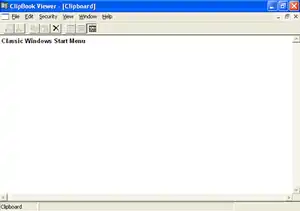 ![]() ClipBook Viewer in Windows XP, with the words "Classic Windows Start Menu" on the clipboard | |
