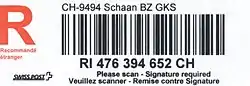 Code 128 is a high-density linear barcode symbology defined in ISO/IEC 15417:2007.[1] It is used for alphanumeric or numeric-only barcodes. It can encode all 128 characters of ASCII and, by use of an extension symbol (FNC4), the Latin-1 characters defined in ISO/IEC 8859-1. It generally results in more compact barcodes compared to other methods like Code 39, especially when the texts contain mostly digits. Code 128 was developed by the Computer Identics Corporation in 1981.[2]