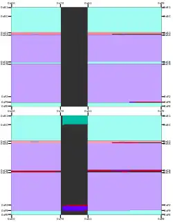 ![]() Code page 950 layout as implemented by Microsoft (top, MS-950 or IBM-1373) and IBM (bottom, IBM-950). | |