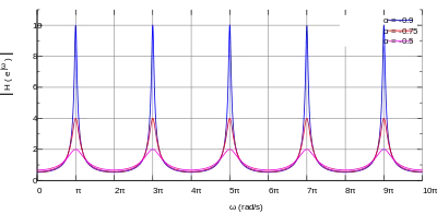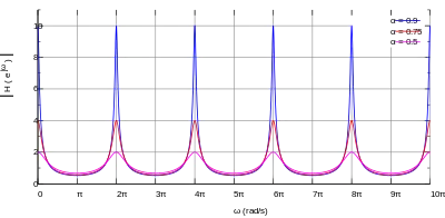 - The filter is only stable if |α| is strictly less than 1. As can be seen from the graphs, as |α| increases, the amplitude of the maxima rises increasingly rapidly.