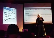 Vincent Connare is reportedly not offended by the negative backlash over Comic Sans. At the Fourth Annual Boring Conference, he claimed to find the contempt for his work to be "mildly amusing."[40] He has stated that he is proud of his creation, offering different rationales. One of these was that "Comic Sans does what it was commissioned to do, it is loved by kids, mums, dads and many family members. So it did its job very well. It matched the brief!" He has also referred to it as "the best joke I've ever told."[41] In 2014, commenting on Comic Sans' critics and fans alike, Connare said, "If you love it, you don't know much about typography, [but] if you hate it, you really don't know much about typography either, and you should get another hobby."[42][43]