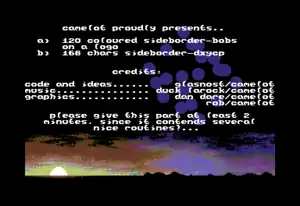 - Sprite scrollers were placed in the border. By tricking the hardware not to draw the border around the screen, sprites could be moved into this area and displayed.
