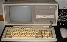 The Compaq Portable II is the fourth product in the Compaq Portable series to be brought out by Compaq Computer Corporation. Released in 1986 at a price of US$3499, the Portable II much improved upon its predecessor, the Compaq 286, which had been Compaq's version of the PC AT in the original Compaq Portable chassis;[5] Portable 286 came equipped with 6/8-MHz 286 and a high-speed 20-MB hard drive, while the Portable II included an 8 MHz processor, and was lighter and smaller than the previous Compaq Portables. There were four models of the Compaq Portable II. The basic Model 1 shipped one 5.25" floppy drive and 256 KB of RAM.[3] The Model 2 added a second 5.25" floppy drive and sold for $3599.[3] The Model 3 shipped with a 10MB hard disk in addition to one 5.25" floppy drive and 640 KB of RAM for $4799 at launch.[2][3] The Model 4 would upgrade the Model 3 with a 20MB hard drive and sold for $4999.[3] There also may have been a 4.1 MB hard drive included at one point.[6] The Compaq Portable II was significantly lighter than its predecessors, the Model 1 weighed just 23.6 pounds compared to the 30.5 pounds the Compaq Portable 286 weighed.[3] Compaq only shipped the system with a small demo disk, MS-DOS 3.1 had to be purchased separately.[3]