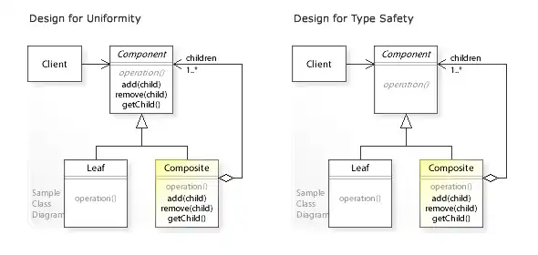 Compositeclass. Clients must treatLeafandCompositeobjects differently. But type safety is gained because clients cannot perform child-related operations onLeafobjects.