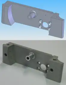 Computer-aided manufacturing (CAM) also known as computer-aided modeling or computer-aided machining[1][2][3] is the use of software to control machine tools in the manufacturing of work pieces.[4][5][6][7][8] This is not the only definition for CAM, but it is the most common.[4] It may also refer to the use of a computer to assist in all operations of a manufacturing plant, including planning, management, transportation and storage.[9][10] Its primary purpose is to create a faster production process and components and tooling with more precise dimensions and material consistency, which in some cases, uses only the required amount of raw material (thus minimizing waste), while simultaneously reducing energy consumption. CAM is now a system used in schools and lower educational purposes. CAM is a subsequent computer-aided process after computer-aided design (CAD) and sometimes computer-aided engineering (CAE), as the model generated in CAD and verified in CAE can be input into CAM software, which then controls the machine tool. CAM is used in many schools alongside CAD to create objects.