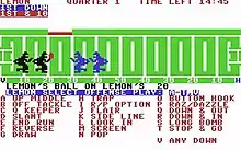 Computer Football Strategy (also known as Football Strategy[2]) is a 1983 sports video game that simulates the National Football League from a strategic point of view. It was developed for the Commodore 64[2] and the Atari 8-bit computers.[3] Many retired professional football players have been noted to be content while recapturing their former heroics on this computer game.[4]