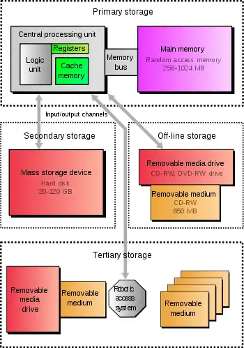 Recently, primary storage and secondary storage in some uses refer to what was historically called, respectively, secondary storage and tertiary storage.[4]