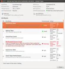 | Error detection | Diagnostic (S.M.A.R.T.) | Error rate measurement | Indicated by downward spikes in transfer rates | (Short-term storage) | Unknown |