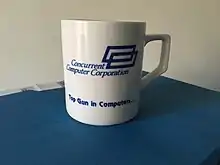 The company was created in November 1985 when the computing division of Perkin-Elmer, the Data Systems Group, was spun off as a separate company.[1] The computing group, which had started out as the company Interdata before Perkin-Elmer acquired it in 1974,[1] had been profitable with sales of $259 million, but had tended to have reduced visibility within the computing industry due to being owned by a diversified parent.[2] At first, the new company was a wholly owned subsidiary of Perkin-Elmer, but with the intentions of putting a minority ownership in the company up for a public stock offering.[1] This was subsequently done, with Perkin-Elmer retaining an 82 percent stake in Concurrent;[3] the remainder went on sale in February 1986 and opened at $20 per share.[4] The stock traded on the NASDAQ exchange.[4]