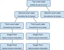 Beyer & Holtzblatt propose the following color-coding convention for grouping the notes, from lowest to highest level in the hierarchy:[1]