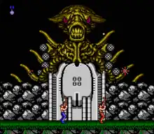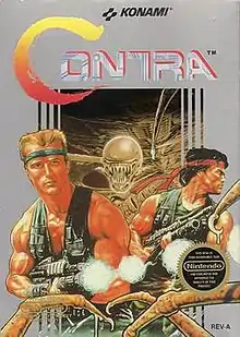Contra[lower-alpha 1] is a run and gun video game developed and published by Konami, originally developed as a coin-operated arcade video game in 1986[5][6] and released on February 20, 1987.[7][8] A home version was released for the Nintendo Entertainment System in 1988, along with ports for various home computer formats, including the MSX2. The arcade and computer versions were localized as Gryzor in Europe, and the NES version as Probotector in PAL regions and France.