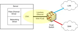 A converged network adapter (CNA), also called a converged network interface controller (C-NIC), is a computer input/output device that combines the functionality of a host bus adapter (HBA) with a network interface controller (NIC). In other words, it "converges" access to, respectively, a storage area network and a general-purpose computer network.