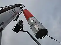 From 2008 to 2012, the group based the work on a hybrid rocket, using liquid oxygen (LOX) as oxidizer.[20] Originally, the HEAT-1X rocket was to be fueled by paraffin wax, but a ground test 28 February 2010 revealed that some of the paraffin wax had only partially melted, instead of evaporating. The result was that HEAT-1X had less power than expected. A ground test firing of HEAT-1X-P (P for polyurethane) was conducted 16 May 2010. The polyurethane had the impulse required, but showed heavy oscillation.[21] Until 2011 the group had performed more than 30 tests of various engine types at their rocket engine test facility at Refshaleøen.[22] In fall of 2012 a concept engine using white fuming nitric acid and furfuryl alcohol was tried using a static test setup.[23] In 2012 a decision was made to switch to bi-propellant, liquid-fueled engines running on liquid oxygen and ethanol. This evolved into the BPM(Bi-Propellant Motor) class currently in use at CS as of 2024.[24]