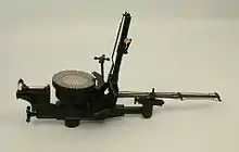 A later modification to the CSBS, and supplied with most of the Mk. VII and Mk. IX examples, was the auxiliary drift bar. This was attached at the front of the main drift bar and consisted of a single drift wire mounted on a rotating fixture.[33] This allowed relative measurements of the drift relative to the aircraft without having to rotate the main drift bar and thereby possibly leave the sight in an incorrect setting.[34]