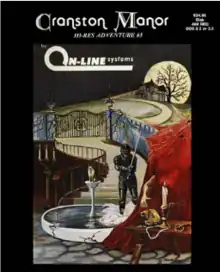 Cranston Manor is a graphic adventure published for the Apple II by On-Line Systems in 1981. It is Hi-Res Adventure #3.[4] The player must invade a mansion that was occupied by a millionaire and steal the sixteen treasures that are inside of it.[4] The game allows players to switch between graphics-based and text-based gameplay.[4]