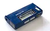 The ZEN Stone, released on May 3, 2007,[23] is a small and screenless 1 or 2 GB player. Coated in glossy plastic, the player is available in black, white, blue, pink, green, and red. The ZEN Stone is compatible with the MP3, WMA, and Audible formats, is UMS compliant, and the battery lasts up to 11 hours.