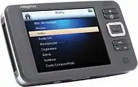 The Zen Portable Media Center, announced on January 8, 2004, and released eight months later,[7] is based on Microsoft's Portable Media Center interface, runs Windows Mobile and supports WMV, WMA, and MP3, and can display JPEG images; other video formats are supported through transcoding. This device was the first to exclusively support Microsoft's Media Transfer Protocol, and was presented at the Consumer Electronics Show in 2004, winning the TechTV Best of CES Award in the Portable Audio and Video category.[2] The player uses a 1.8-inch 20 or 40 GB hard drive from Hitachi. The Zen Portable Media Center was replaced by the ZEN Vision and the ZEN Vision W.
