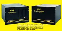 The Cromemco Z-2H computer was based on the Z-2D, but in addition had an 11 megabyte internal hard disk drive.[7] While the Z-2 and Z-2D had 21 S-100 slots, the Z-2H was limited to 12 expansion slots due to the size of the internal hard disk. Over 1000 Z-2H systems were sold in the first six months on the market.[2] The 11-megabyte hard disks were also offered as a separate unit, the HDD, that could be used with a Z-2D computer. The HDD came with either one or two hard disks, for up to 22 megabytes of storage.[8]