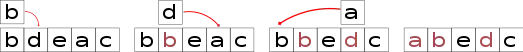 ![]() Example of cycle sort sorting a list of random numbers. Example of cycle sort sorting a list of random numbers. | |