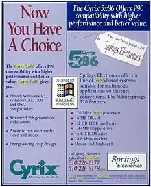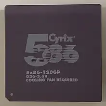 The Cyrix 5x86 is a line of x86 microprocessors designed by Cyrix and released on June 5 of 1995.[1][2][3] Cyrix, being a fabless company, had the chips manufactured by IBM. The line came out about 5 months before the more famous Cyrix 6x86. The Cyrix 5x86 was one of the fastest CPUs ever produced for Socket 3 computer systems. With better performance in most applications than an Intel Pentium processor at 75 MHz, the Cyrix Cx5x86 filled a gap by providing a medium-performance processor option for 486 Socket 3 motherboards (which are incapable of handling Intel's Pentium CPUs, apart from the Pentium Overdrive).