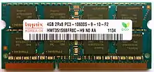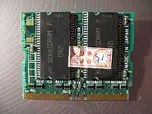 A SO-DIMM (pronounced "so-dimm" /ˈsoʊdɪm/, also spelled "SODIMM") or small outline DIMM, is a smaller alternative to a DIMM, being roughly half the physical size of a regular DIMM. The first SODIMMs had 72 pins and were introduced by JEDEC in 1997.[8][9][10] Before its introduction, many laptops would use proprietary[11] RAM modules which were expensive and hard to find.[8][12]