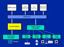 DMS SuperNode featured increased processing capacity across a distributed architecture allowing for the development of new features and services. Each of the elements of the DMS SuperNode uses a common SuperNode CPU hardware design differing only in the software used to control them. The SuperNode consists of two main elements: DMS Core and DMS Bus.