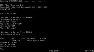 It also contains subsets of the standard DOS commands and CP/M commands – for example, it has both a built-in COPY command, and a PIP utility, both of which copy files.