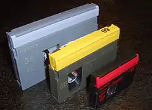 Extra-large cassettes or XL-size (172 x 102 x 14.6 mm)[28] are close in size to VHS cassettes and have been designed for use in Panasonic equipment and are sometimes called DVCPRO XL. These cassettes are not widespread, only a few models of Panasonic tape recorders can accept them. Each XL-size cassette holds nearly double the amount of tape as the full-length L-size cassettes with a capacity of 252 minutes of DVCPRO video or 126 minutes of DVCPRO50 or DVCPRO HD-LP video.