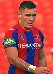 In Round 15 of the season, he made his first-grade debut for the Knights against the Cronulla-Sutherland Sharks, playing off the interchange bench in the Knights' 30-28 loss at Hunter Stadium.[15][16][17] In Round 16 against the Brisbane Broncos, he scored his first NRL career try in the Knights' 44-22 loss at Suncorp Stadium.[18] On 27 August, he extended his contract with the Knights to the end of 2018.[19][20]