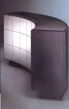 The DataVault was an example of unusual industrial design. Instead of the usual rectilinear box, the cabinet had a gentle curve that made it look like an information desk or a bartender's station.[2]