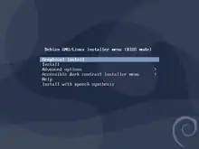 Debian offers different network installation methods. A minimal install of Debian is available via the netinst CD, whereby Debian is installed with just a base and later added software can be downloaded from the Internet. Another option is to boot the installer from the network.[112]