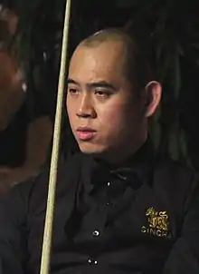 At the Paul Hunter Classic, Poomjaeng won three matches and then defeated Neil Robertson 4–2 to reach the quarter-finals where he lost 4–2 to Rod Lawler. This result would later help him finish 32nd on the Order of Merit.[24] Poomjaeng's first appearance at a ranking event this season was at the International Championship, but he was beaten 6–2 by Mark Davis in the first round.[25] At the UK Championship he recorded wins over Andrew Norman and Michael Holt, before Marco Fu knocked him out 6–3 in the third round.[26] Fu also eliminated Poomjaeng in the second round of the Welsh Open this time 4–2. Poomjaeng won three frames in a row from 3–1 down against Robertson in the first round of the China Open with the match eventually going into a deciding frame.[27] Poomjaeng took it on the final black and then whitewashed Jack Lisowski 5–0 to play in the last 16 of a ranking event for the only time this season, where he lost 5–1 against Gary Wilson.[28]