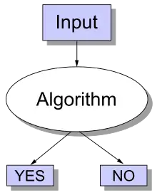 A decision problem is a yes-or-no question on an infinite set of inputs. It is traditional to define the decision problem as the set of possible inputs together with the set of inputs for which the answer is yes.[1]