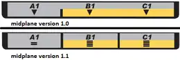 As it is possible to upgrade the midplane the outside markings are not decisive: via the CMC management interface actual installed version of the midplane is visible[3]