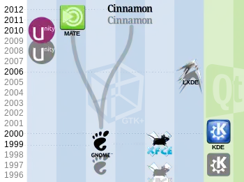 In 1996 the KDE was announced, followed in 1997 by the announcement of GNOME. Xfce is a smaller project that was also founded in 1996,[4] and focuses on speed and modularity, just like LXDE which was started in 2006. A comparison of X Window System desktop environments demonstrates the differences between environments. GNOME and KDE were usually seen as dominant solutions, and these are still often installed by default on Linux systems. Each of them offers: