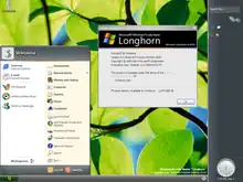 Build 5098 (build date of June 28, 2005) includes most of the new features that will later be seen in Beta 1, but still identifies itself as Longhorn.