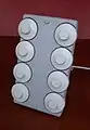 Standard dial box has 8 dials mounted on a plate. The plate is set upright with the help of a stand and usually located next to the computer screen for convenient access. The connection to a computer is made via the serial port (RS-232).