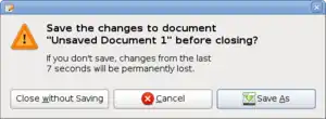 The simplest type of dialog box is the alert, which displays a message and may require an acknowledgment that the message has been read, usually by clicking "OK", or a decision as to whether or not an action should proceed, by clicking "OK" or "Cancel". Alerts are also used to display a "termination notice"—sometimes requesting confirmation that the notice has been read—in the event of either an intentional closing or unintentional closing ("crash") of an application or the operating system. (E.g., "Gedit has encountered an error and must close.") Although this is a frequent interaction pattern for modal dialogs, it is also criticized by usability experts as being ineffective for its intended use, which is to protect against errors caused by destructive actions,[1] and for which better alternatives exist.[2]
