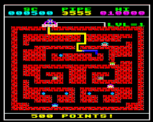 Diamond Mine is a maze video game first published by MRM Software for the Acorn Electron and BBC Micro home computers in 1984. Diamond Mine was reissued by Blue Ribbon in 1985 and ported to other systems in 1985 and 1986. Blue Ribbon released a sequel, Diamond Mine II, at the same time. Both games are similar to the 1983 game Oil's Well, which itself is a re-themed version of the 1982 Anteater arcade video game.