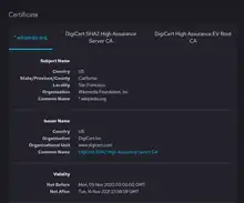 DigiCert, Inc. is a digital security company headquartered in Lehi, Utah.[1] DigiCert provides public key infrastructure (PKI) and validation required for issuing digital certificates or TLS/SSL certificates, acting as a certificate authority (CA) and trusted third party.