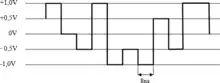 In digital electronics, a digital signal is a pulse amplitude modulated signal, i.e. a sequence of fixed-width electrical pulses or light pulses, each occupying one of a discrete number of levels of amplitude.[6][7] A special case is a logic signal or a binary signal, which varies between a low and a high signal level.