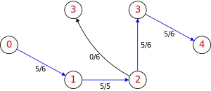 - ↑ This means that the subgraph resulting from removing all saturated edges (edges with ) does not contain any path from to . In other terms, the blocking flow is such that every possible path from to contains a saturated edge.