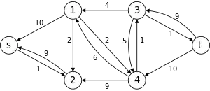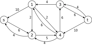Dinic's algorithm or Dinitz's algorithm is a strongly polynomial algorithm for computing the maximum flow in a flow network, conceived in 1970 by Israeli (formerly Soviet) computer scientist Yefim Dinitz.[1] The algorithm runs in time and is similar to the Edmonds–Karp algorithm, which runs in time, in that it uses shortest augmenting paths. The introduction of the concepts of the level graph and blocking flow enable Dinic's algorithm to achieve its performance.