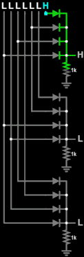 - ↑ The output will be pulled specifically to one forward voltage drop less than the lowest high input voltage. The designer must ensure this output voltage should still lie within the valid high range.