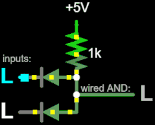 - ↑ Integrated Circuits §Using diodes to combine outputs, Electronics Club, retrieved 27 November 2022.